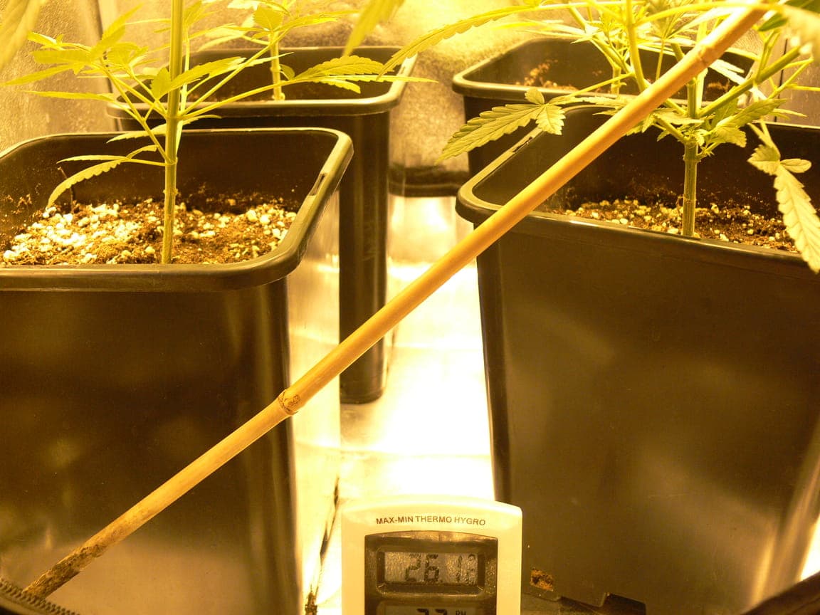 Ich bin mir nicht sicher ob es wirklich problematisch ist oder ich mich noch etwas gedulden muss, bis die Stämme eine richtige Masse erreicht haben aber wenn ich die Mädels mit anderen vergleiche, wirken sie für ihre 40 Tage Vegi sehr schmächtig ( VT1 = 3 Fingerblatt halb ausgewachsen )