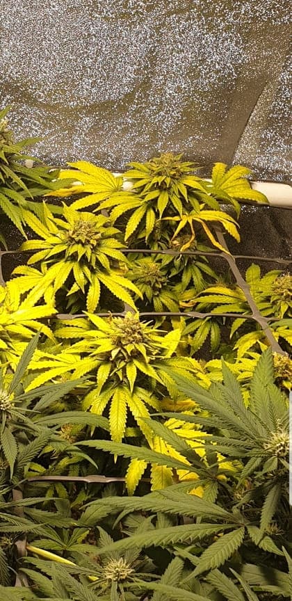 Hier ist BT 57 und meine Pflanzen haben entweder ihr Ende eingeläutet oder irgendwas läuft schief. Ist jetzt auch wurscht, da in 6 Tagen gerodet wird. Das vergilben der Blätter kam schlagartig nach den hohen Temperaturen am Wochenende,hat aber nur die alten Plants erwischt,insofern tendiere ich zu der "wir sind bald Ernte-Reif" Theorie.