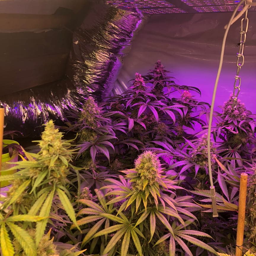 Anzucht-schränkchen von innen, SLH GG#4 Cheese Hulkberry und Purple Bud als fem. und der Rest is Northern Lights als reguläre zum vermehren bzw kreuzen