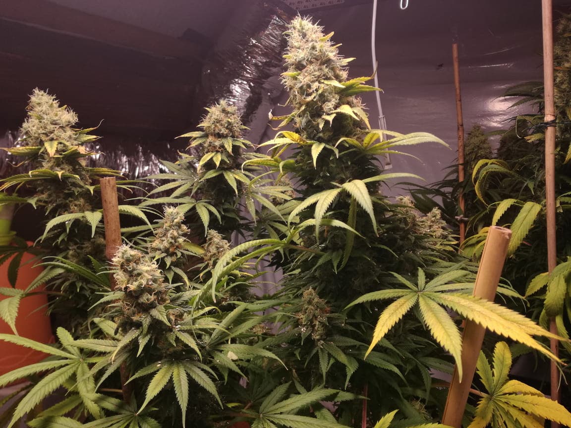 Also nochmal : Habe heute Trichome kontrolliert bei allen, das Ergebniss erstaunte mich denn bei den Gorillas sind die Stygmen fast alle noch hell aber die Trichome werden schon milchig, sehr cool8)
