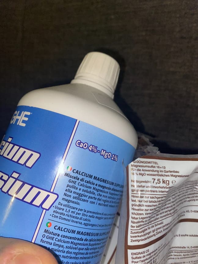 Aaaalso um darauf zu kommen solltest du 1,5 ml vom cal/mag dazu tun und 0.2 gr vom Bitteralz pro Liter, wohlgemerkt