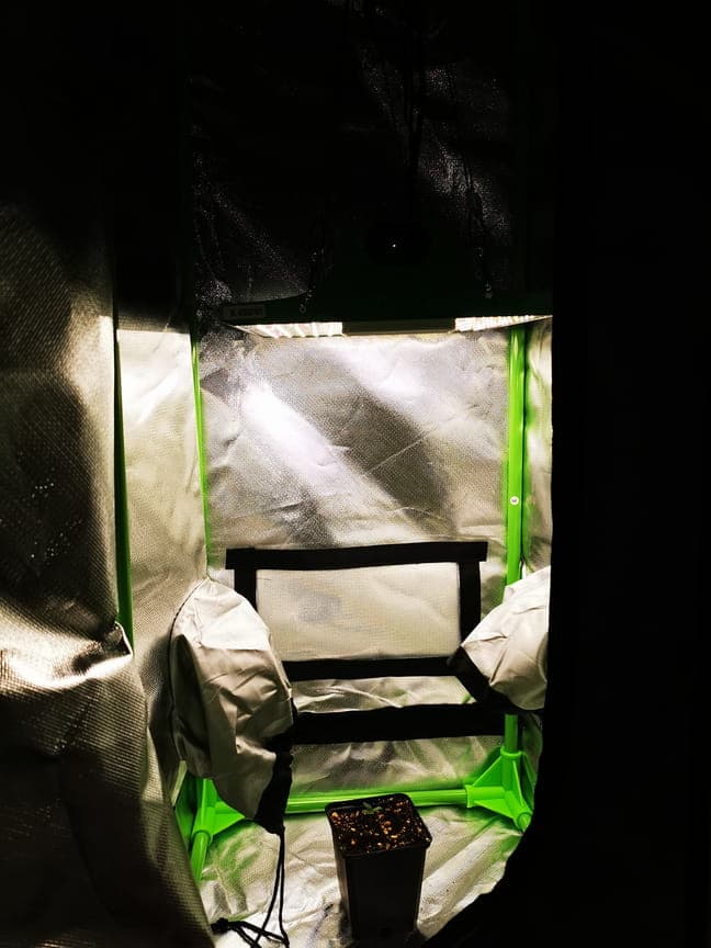 Weil ich gerne meine Hobbys übertreibe gibt es mittlerweile noch ein 40 * 40 * 120 Zelt zur Anzucht und andere Schweinereien. 🐖