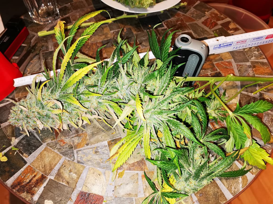 Das war eine tolle Ernte und weil es so viel ist, habe ich noch ne Menge kleiner Buds plus Blätter einfach ungetrimmt getrocknet.