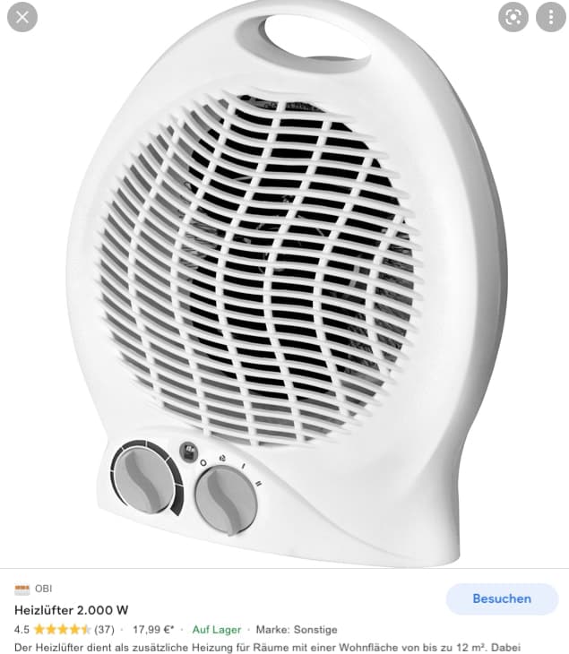 Das hat glaube ich 70 watt und bringt höchstens 2 Grad.