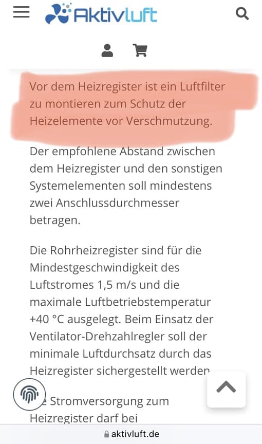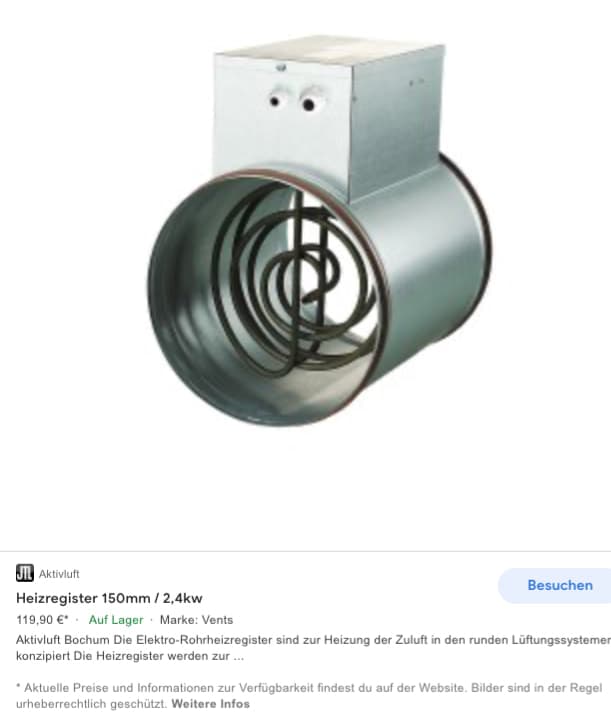 Im Keller habe ich ein Heizkabel in den Ansaug gesteckt um die Temperatur ein bisschen anzuheben ist es dort ein wenig kalt.