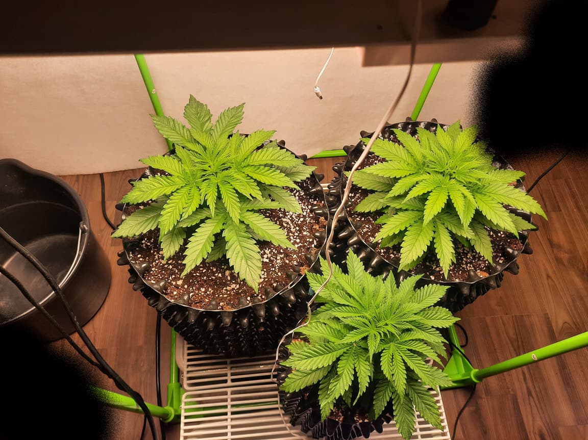 "Wenn die blätter so nach unten hängen," wie zuvor thematisiert, ist das oft Strainabhängig. Ne Kush wächst gern so, oder meine SLHxNLX auch.... Andere option sind zuviel umol/Licht, dann werden die Blätter dicker , riffeliger und stehen gerne mal so runter.... Das ist aber kein Grund für Panik, denn die werden sich im Laufe der Zeit daran gewöhnen.