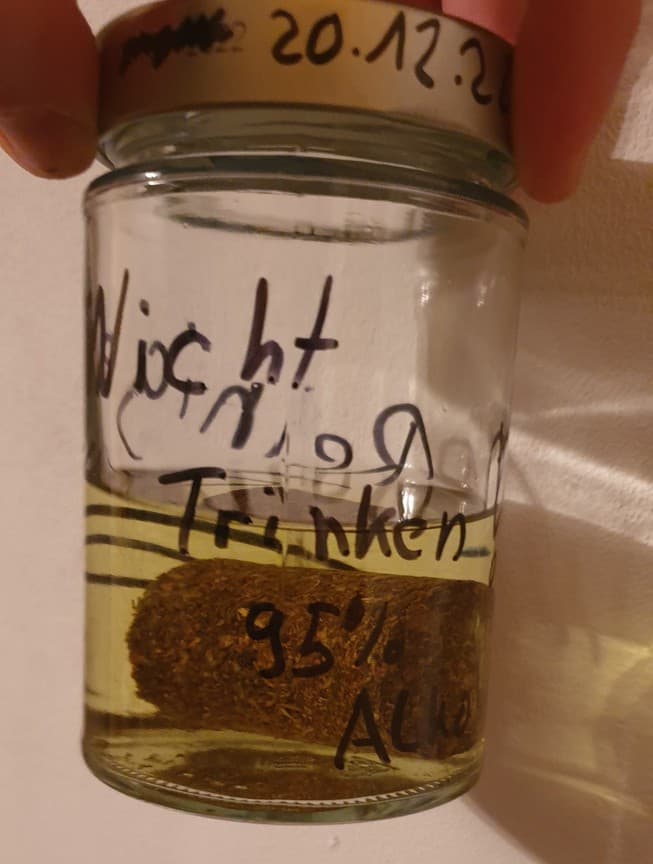 Als alkohlbasierte Tinktur empfehle ich (!!!) ein Kaltmazerat zu machen. Hört sich wissenschaftlich an, aber ist nichts weiter als ein Auszug, also eine Tinktur.