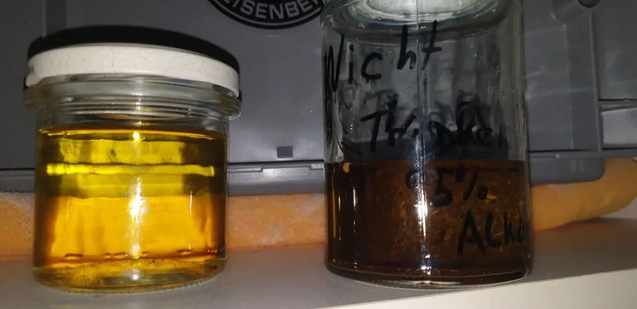 Sauberes Extrakt schmecht auch schon krass garstig. Das muss irgendwie an der geschmacksverstärkenden Wirkung von Alkohol liegen. In Öl gelöstes Harz ist weniger schlimm. Mich hat es jedenfalls immer geschüttelt🤣