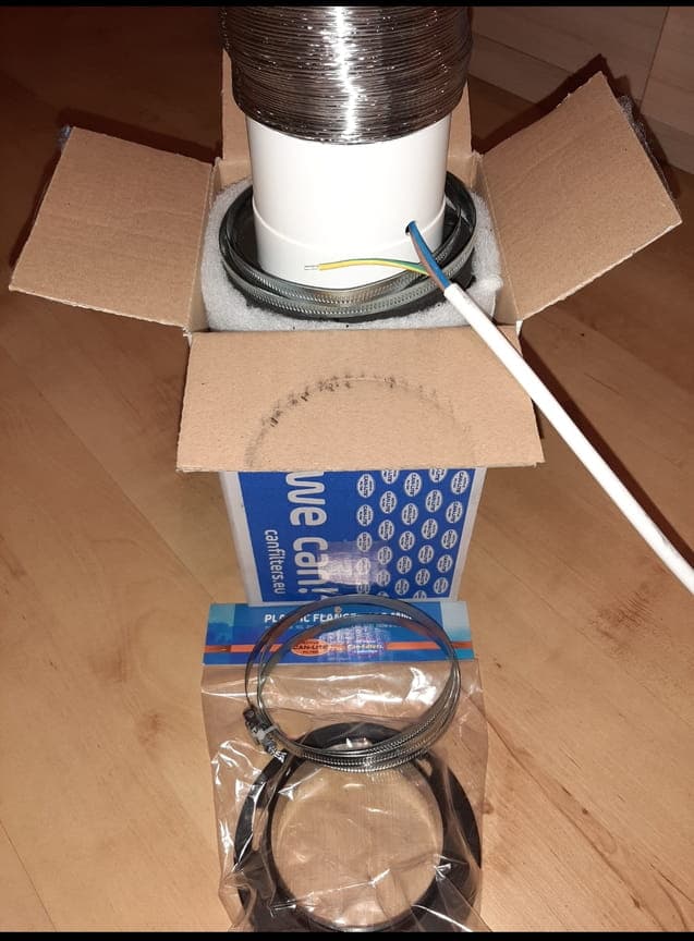 Ich habe ein Zelt 80x80x180, einen Ventilator und 2 LED Lampen.