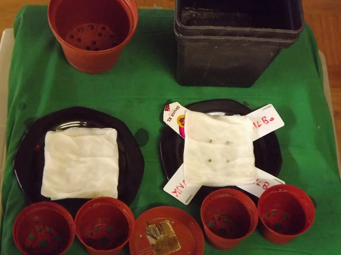 hab soeben die samen auf ihr feuchtes tuch gelegt, fenstersteinbank ist warm wegen darunterligender heizug