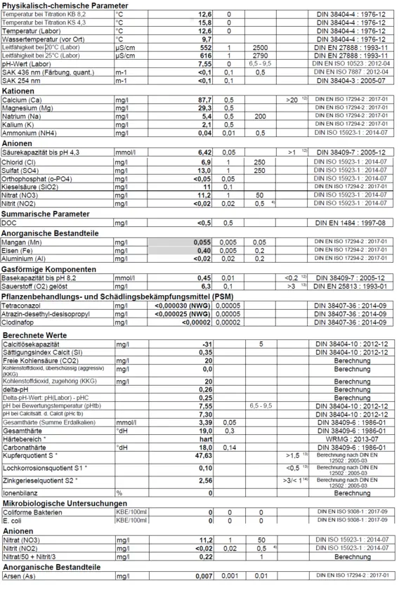 ph : 7,55 - könnte aber irgendwo bei 6,5 bis 9,5 betragen wenns in den wohnungen (oder gemeinden ?) ankommt