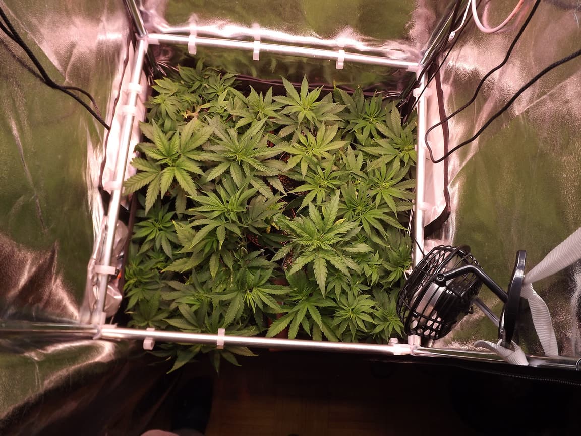 aber hab den lüfter etwas höher gedreht, man hört ihn jetzt a bissi flüstern und zelt spannt bissl mehr, und die einsaugöffnungen sind unten etwas unter topf niveau