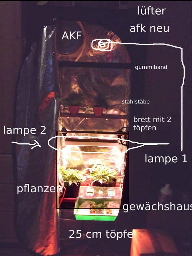 ich hab ja 2 lampen, dann kommen die trained ladies ganz am boden die SF1000 Q. Led Light tiefer runter ... sollte sich eigentlich ausgehen mit den stoffpötten dass ich die 2te lampe höher häng und auf einer platte die ganzen steckis in mini töpfen flach zum boden zu wachsen ?