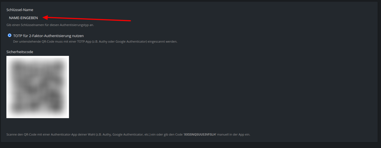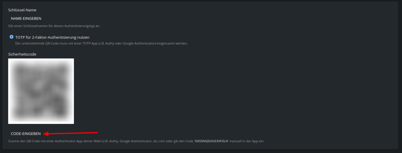 Du musst erst einen Schlüssel anlegen und den QR-Code scannen und per App den Code eingeben, erst wenn die Prozedur komplett abgeschlossen ist ist dein Account per 2FA gesichert.