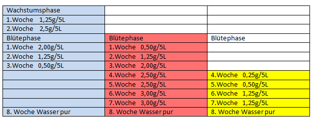 Ich weiß noch nicht ob ich in Woche 1 oder 2 schon anfange zu Düngen, aber wenn dann hab ich das Schema von @einsdreisieben auf %L umgerechnet.