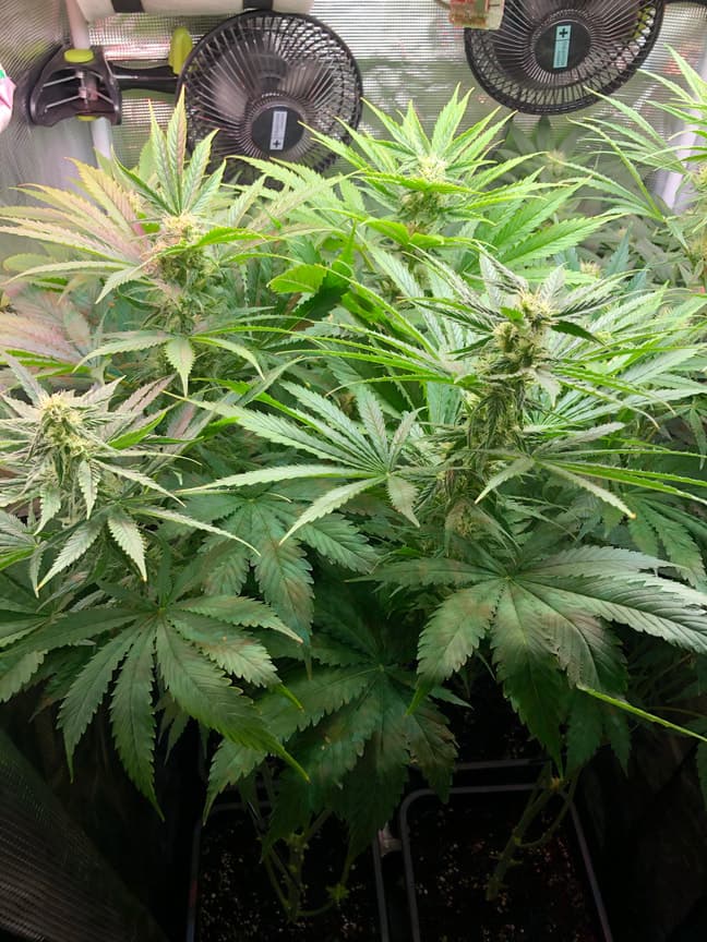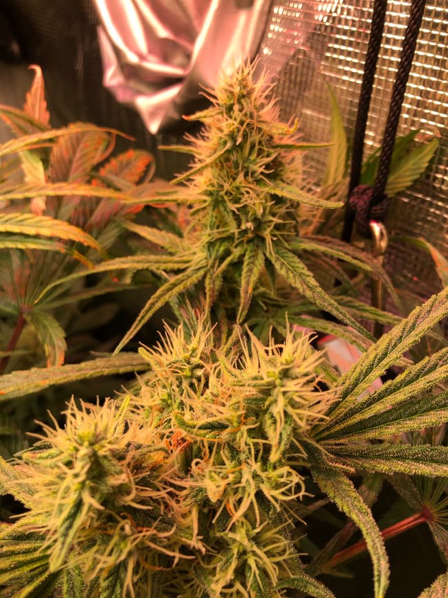 NĂ€chste Woche werde ich die CO und die Panama runterbinden, die 10 cm Abstand zur Lampe sind nix fĂŒr die Damen, die Laughing Buddha in der hinteren Reihe siehst man zwar nicht, aber denen geht es gut soweit 😁