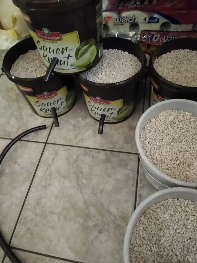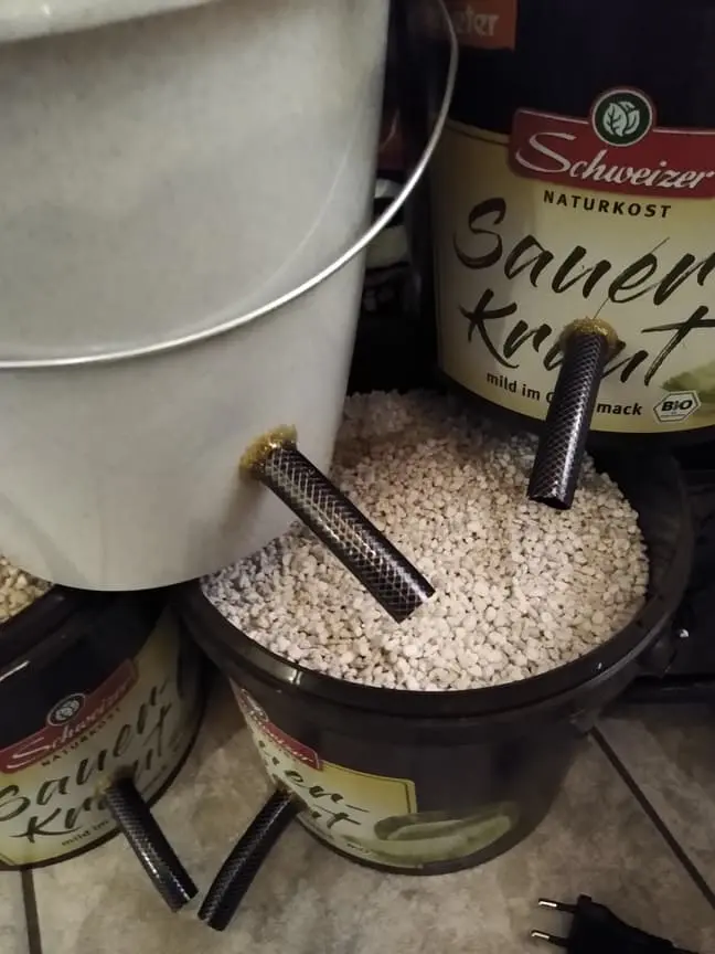 nach dem setzen alle Buckets mit 10% Drain angegossen....