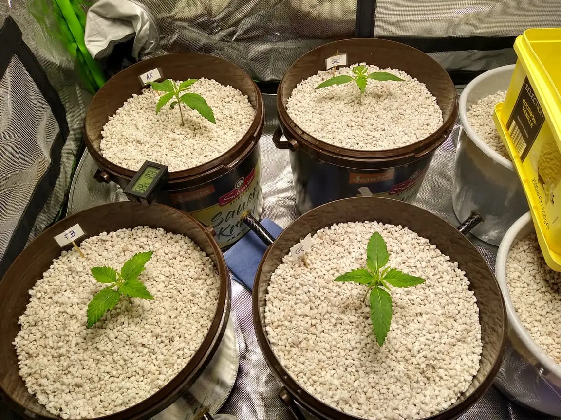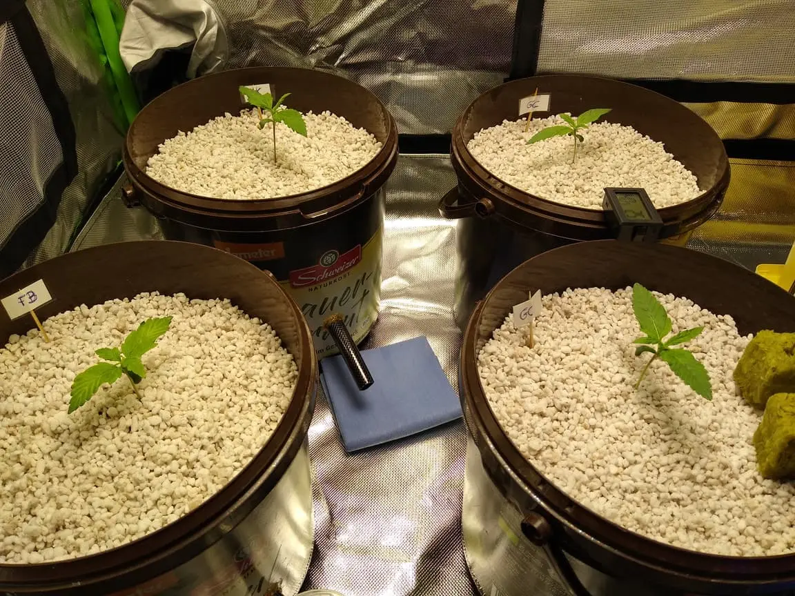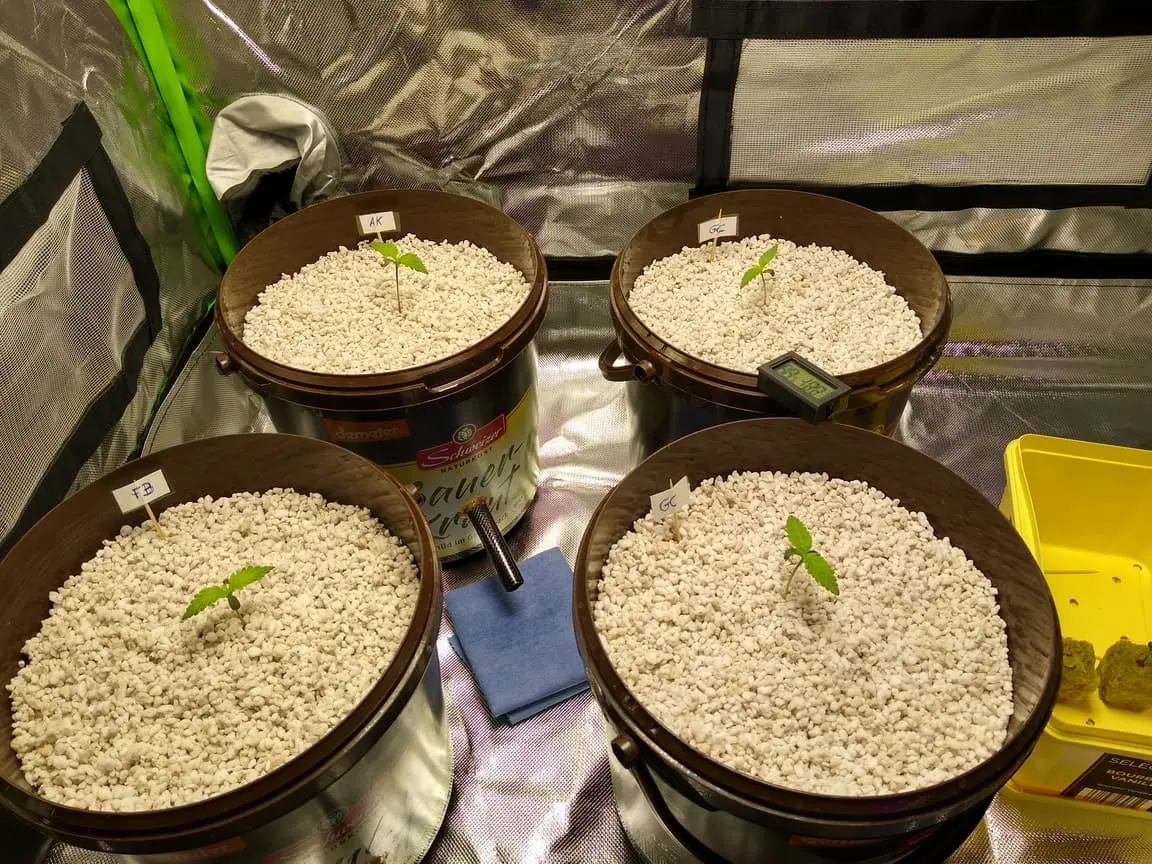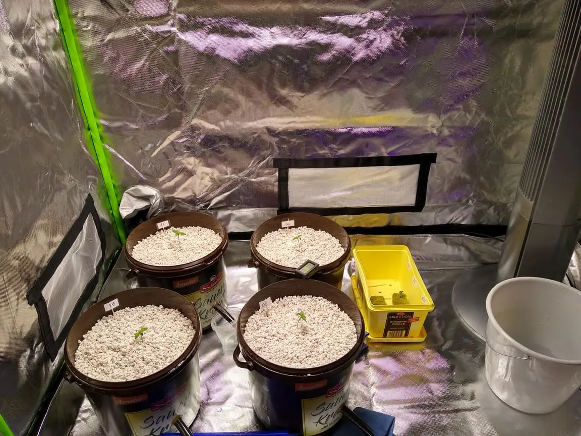 die Hempys hab ich 2-3 Tage täglich durchgespült und heute mit 10g Haka blau/10L und pH: 5,9 EC: 0,66