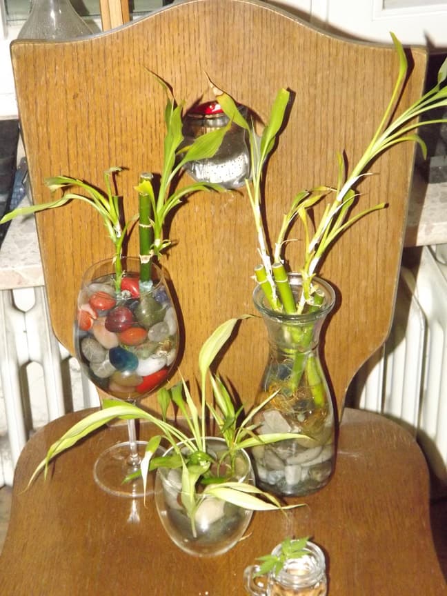 von meinem gekauften glücksbambus - da waren aber paar schon von anfang an tot, die gaben keinen mucks von sich, als ich sie aufmachte und ins schälchen stellte, da kam nie ein trieb bei denen