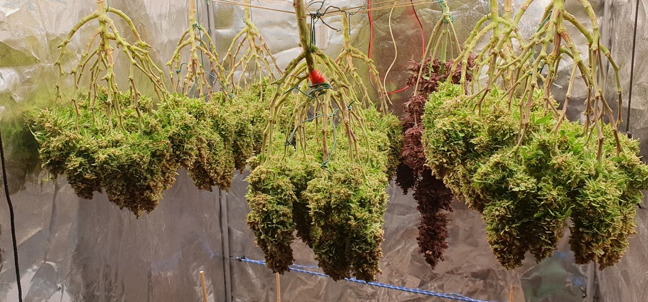 Material runtergetrocknet auf knapp 70% Rlf im Glas dann die Blüte bisschen auf Heizkörper bis rauchfertig.