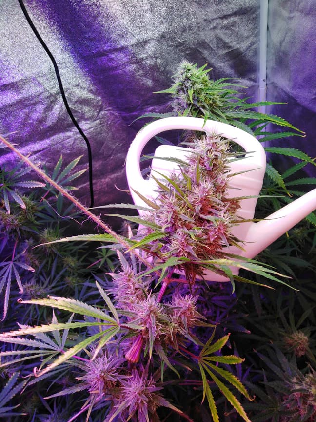 Ich kann meine Hand nicht mehr um die Buds legen , so groß sind die . Als Vergleich mal eine 1.3 Liter Gießkanne hinter ner "dicken" Bud
