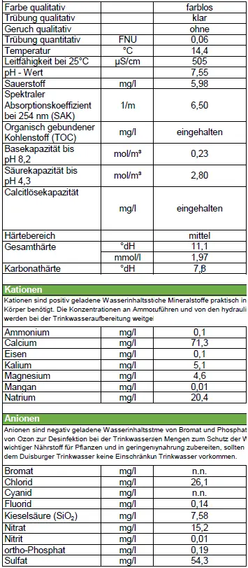 Wasserwerte von 2021