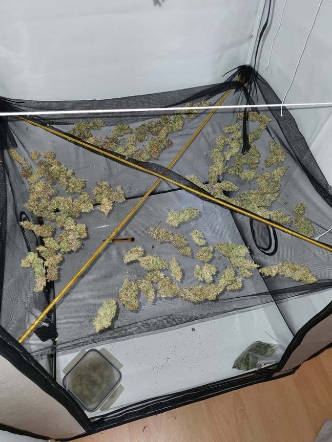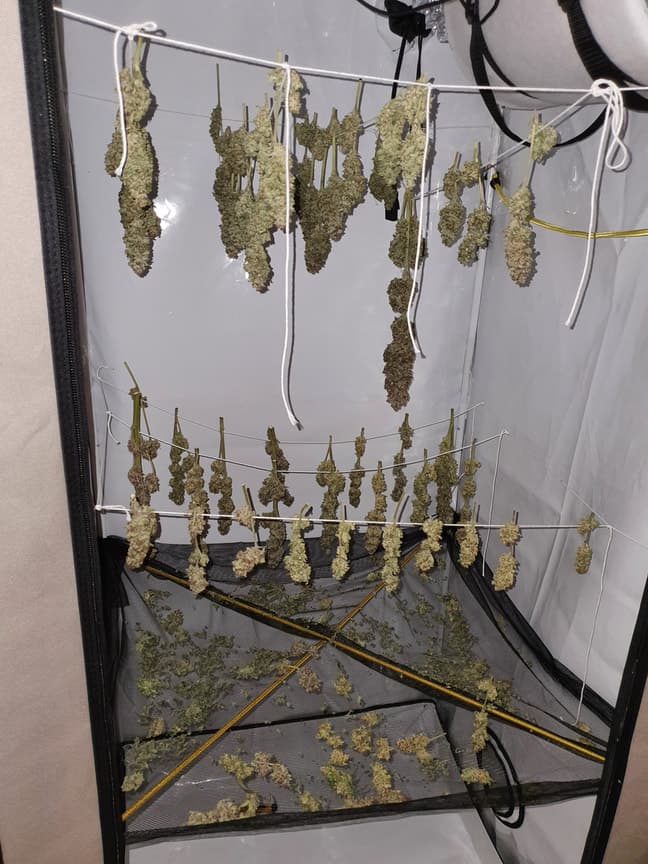 Die Luftfeuchtigkeit wurde gegen Ende ein richtiges Problem, weshalb ich mir einen Luftentfeuchter zulegen musste. Der kam aber erst beim Trocknen zum Einsatz, vor der Ernte sind mir noch die beiden Mainbuds zu einem guten Teil weggeschimmelt. Ungeil.