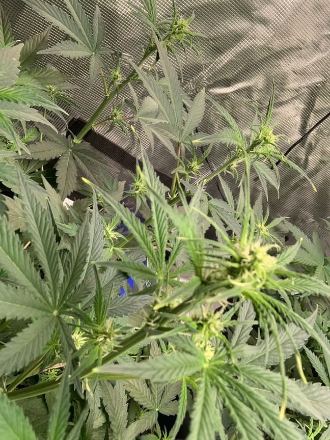 Ansonsten lief alles sehr glatt. Nur die Pflanze die am meisten verdrehte, weiße Blätter mit Mini-Rostflecken hat wurde vor einer Woche der Main Bud abgebrochen und verarztet. Wächst aber weiter.