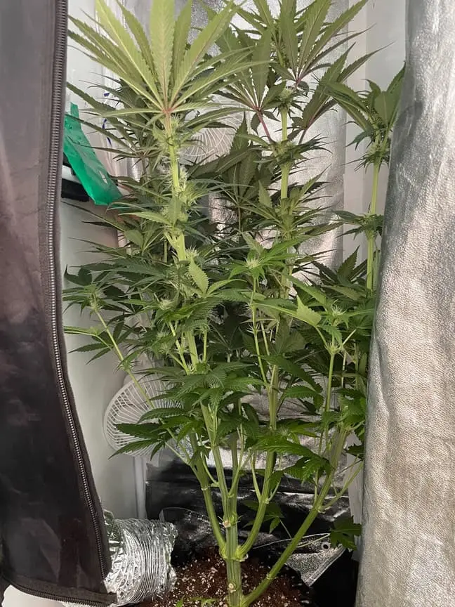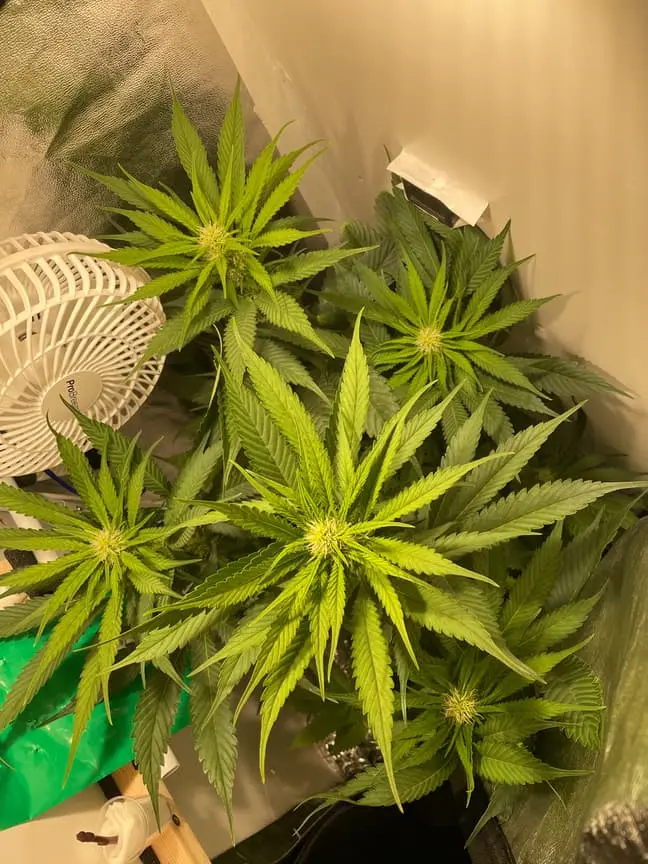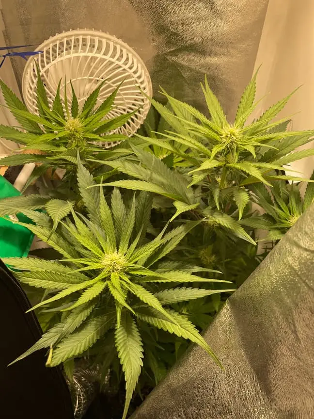 Ich habe die 4 buds mit nem Band etwas an die wände rangezogen, damit die kleinen Zweige auch etwas Licht abkriegen, zusätzlich habe ich An einer Ecke noch eine 26w Blütenleuchte von secret jardin dran, mit der Hoffnung, dass ich das Maximum aus meinem kleinen Raum rauskitzeln kann, mal schauen ob es was bringt 😅