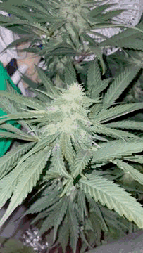 Habe einen unteren Seitentrieb entfernt, weil der kaum Licht gekriegt hat, der trockene Bud davon kann sich dennoch schon sehen lassen 😍
