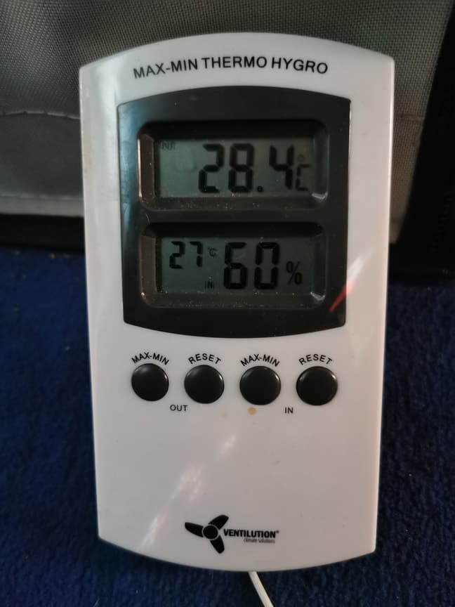 draußen Regen ohne Ende und im Zelt dadurch gleich ü 70% 😠... Hab jetzt alle Türen offen inkl. Fenster