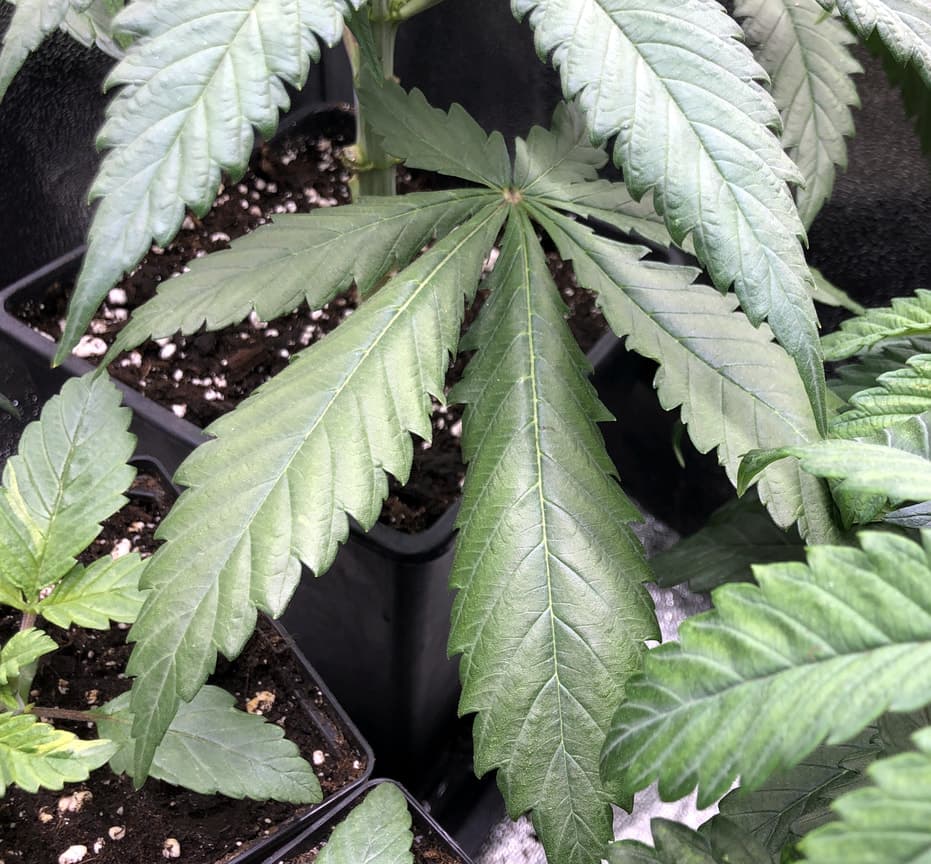 Das Fanleave von Bild 1 hat sich nach dem vorletzten Gießen verändert (wo ich sie schon zu lange mit nassen Füßen habe stehen lassen. Die kleine auf Bild 2 sieht seit heute so aus, nachdem sie stundenlang im Drain stand.