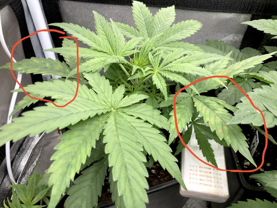Schau dir die Flecken an den Blättern die ich eingekreist habe. Ich warte noch ein paar Tage dann sieht man die Nekrosen besser.