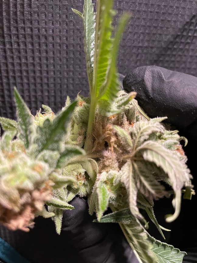 âŠ..Schimmel bei einer Mimosa đ€ąâŠein Headbud ist heute geflogen, bei den anderen konnte ich nichts entdecken, Entfeuchter lĂ€uft, Daumen drĂŒcken, eigentlich wollte ich die noch ne Woche stehen lassen, trichome zwar schon milchig aber noch etliche klarâŠdie buds sind auch knĂŒppel hart bei den Mimosas, die anderen strains sind auch kompakt aber zum GlĂŒck nicht so heftig