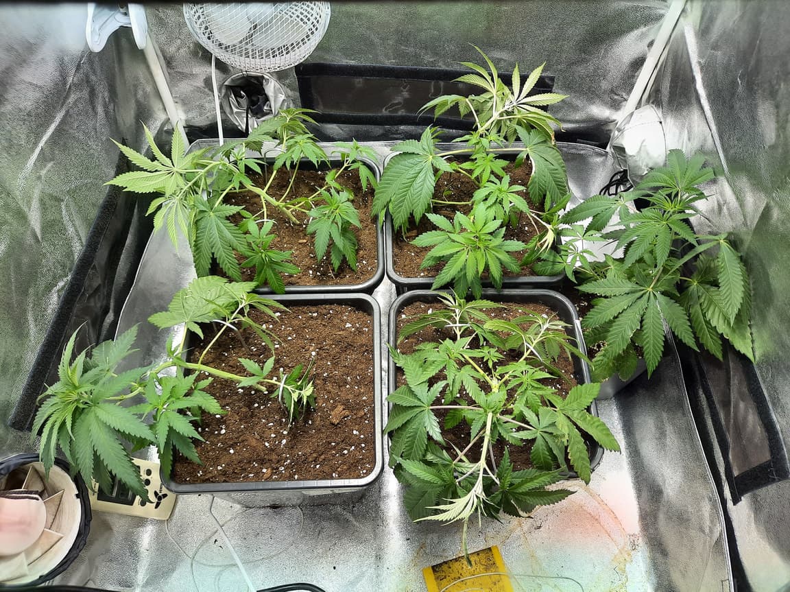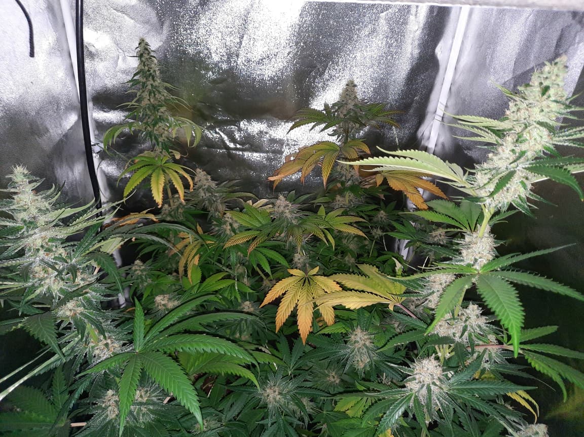 Ich muss mal bisschen mehr düngen.. bin immer zu vorsichtig. Da ich sie kurz vor der blüteumstellung umtopfe fange ich nicht direkt an zu düngen aber manche Sorten zeigen ziemlich schnell Mängel.. Hab ihr 1ml/l bloom, topmax und geow gegeben ab der ersten Woche und trotzdem haben sie gelbe Blätter.