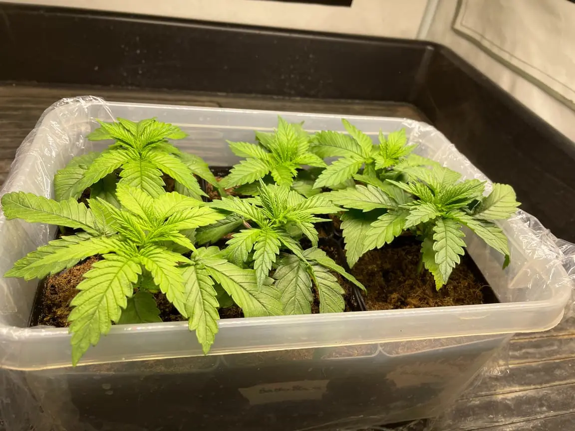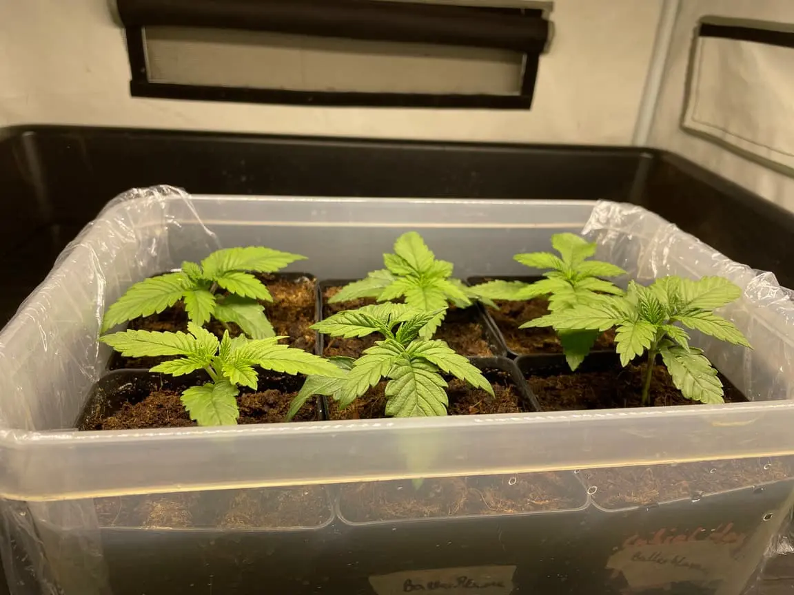 Minis mit Anzuchterde (nach 24 Stunden Tauchgang) zum Keimen und wenn diese das erste oder auch zweite richtige Blattpaar zeigen gehts in 10x10x10 mit richtiger Erde.