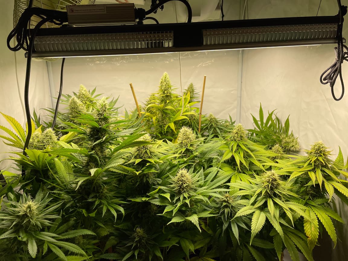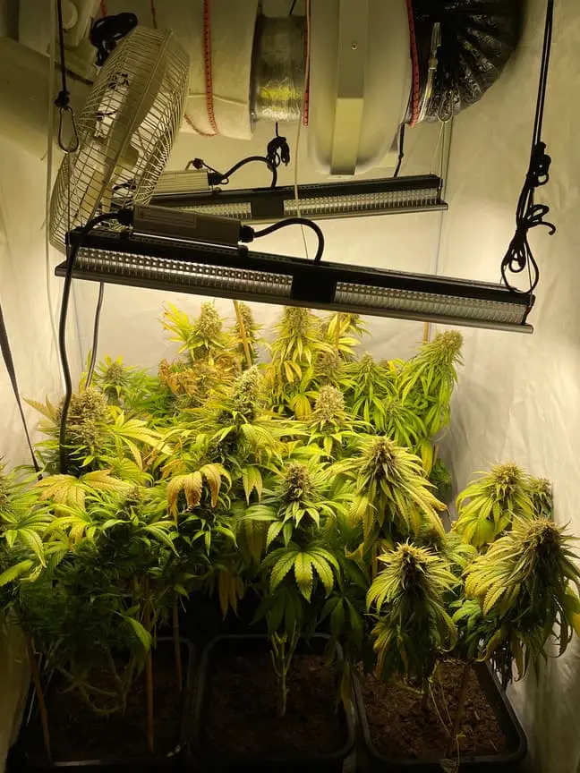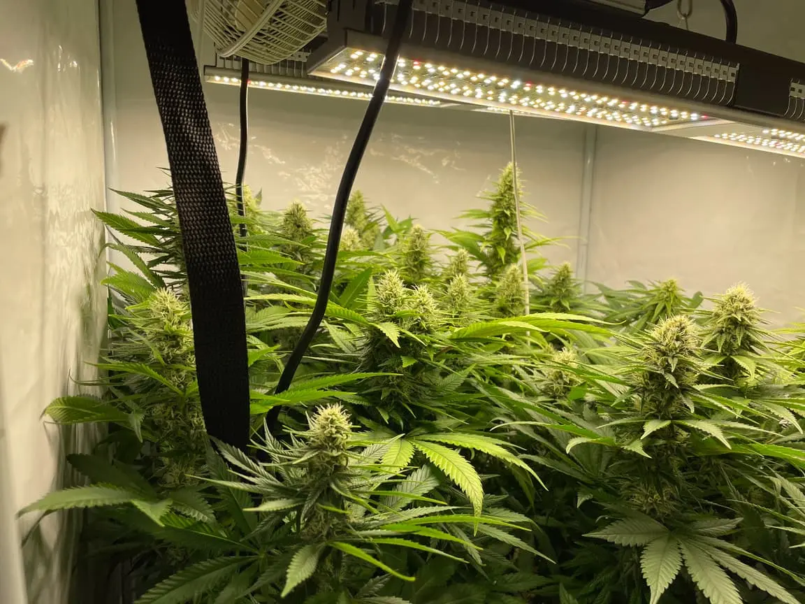 Somit leuchten heute 2 SP150 in meinem Zelt und für die Luft nutze ich einen kopfüber aufgehängten Schwenkventilator, einen 420er LTI mit 500er AKF, gesteuert mit GSE Regler.