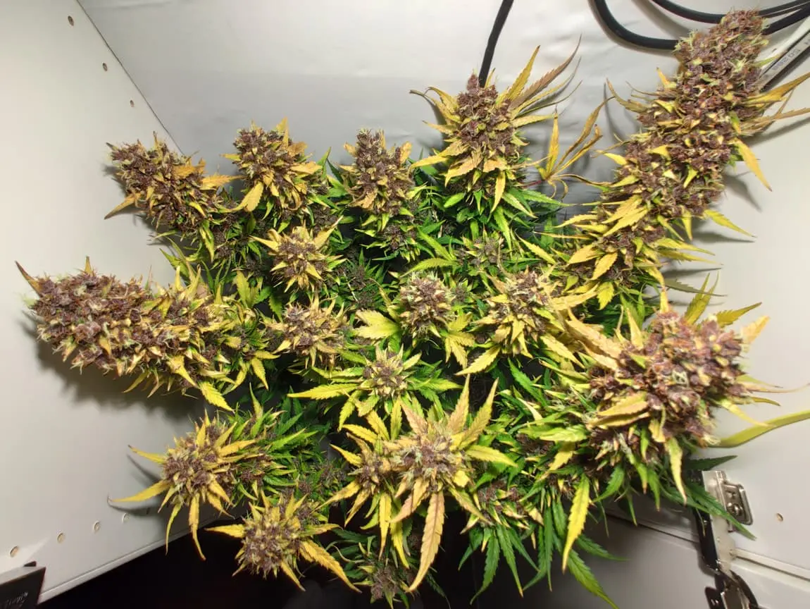 Verglichen zu meinem letzten Grow (Gorilla Glue #4) deutlich weniger harz drumrum (was klar war), aber auch die Buds wachsen ganz anders.