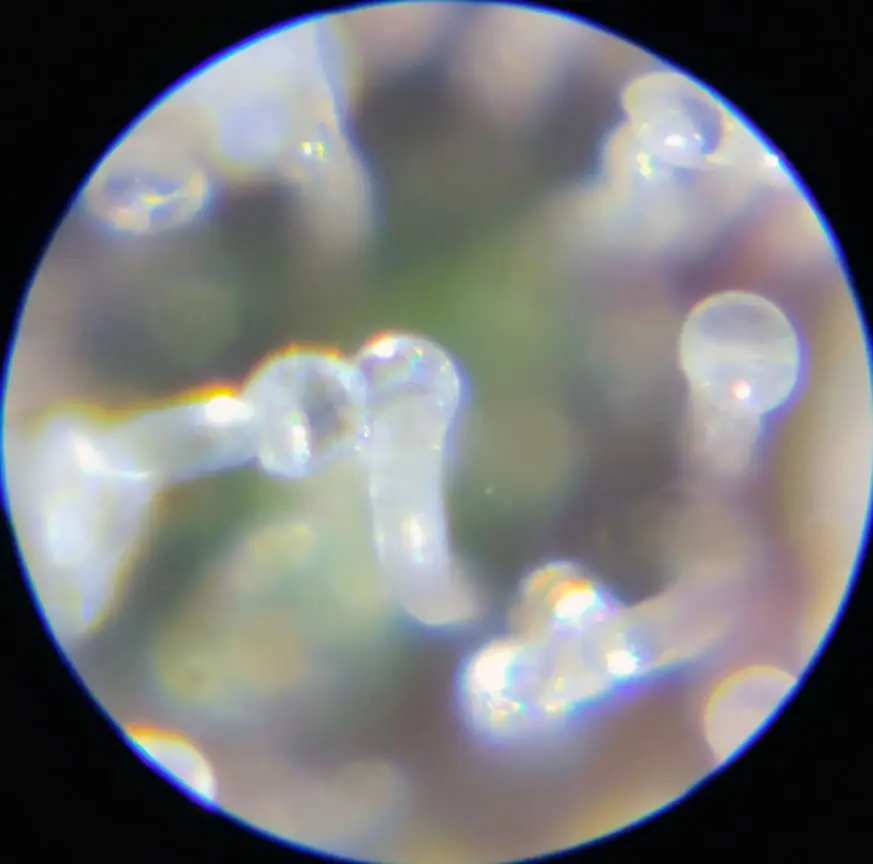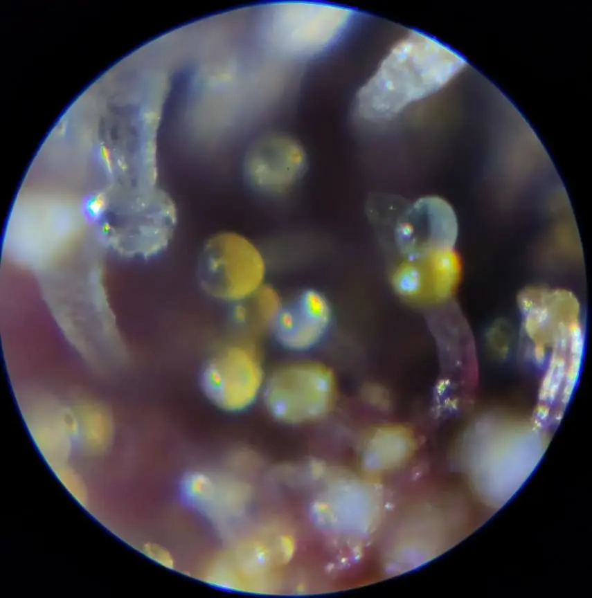 Auch sind viel mehr Zuckerblätter zwischen den Blüten - da waren die Gorilla Glue Buds schon was anderes .