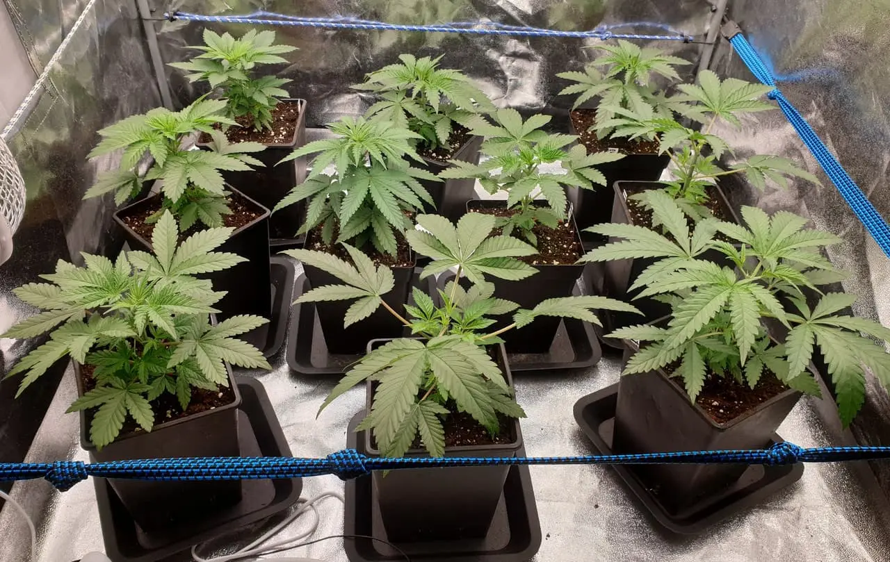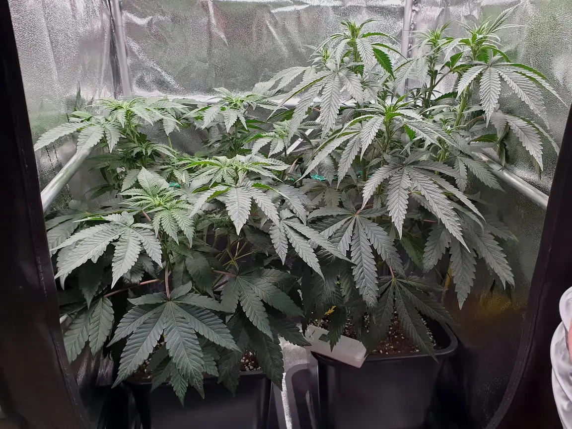 Schön gewachsen sind sie die Woche. Die einzigen die etwas zicken ist einmal die Mazar hinten links die etwas geschockt war vom umtopfen und dann etwas überfordert von der fetten Erde wurde. Spitzen ganz leicht verbrannt. Zum zweiten die CBD Skunk Haze (Mitte, zweite von links) muss auch was abbekommen haben, zieht einfach nicht so brav mit wie die anderen.