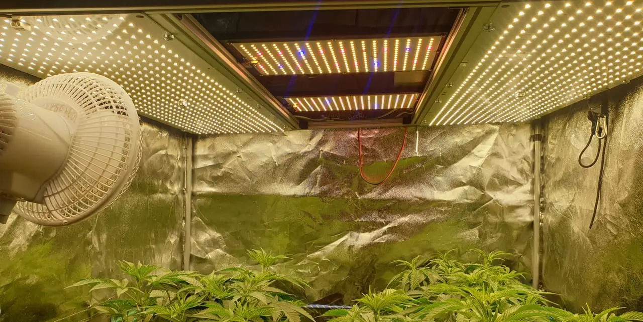 Vier Zeus XT im 1m² Zelt die mit bisschen Lightshow gepimpt wurden. Wird höchstens mit 400W gefahren insgesamt. Im 0,36m² Zelt kommt die hier zum Einsatz.