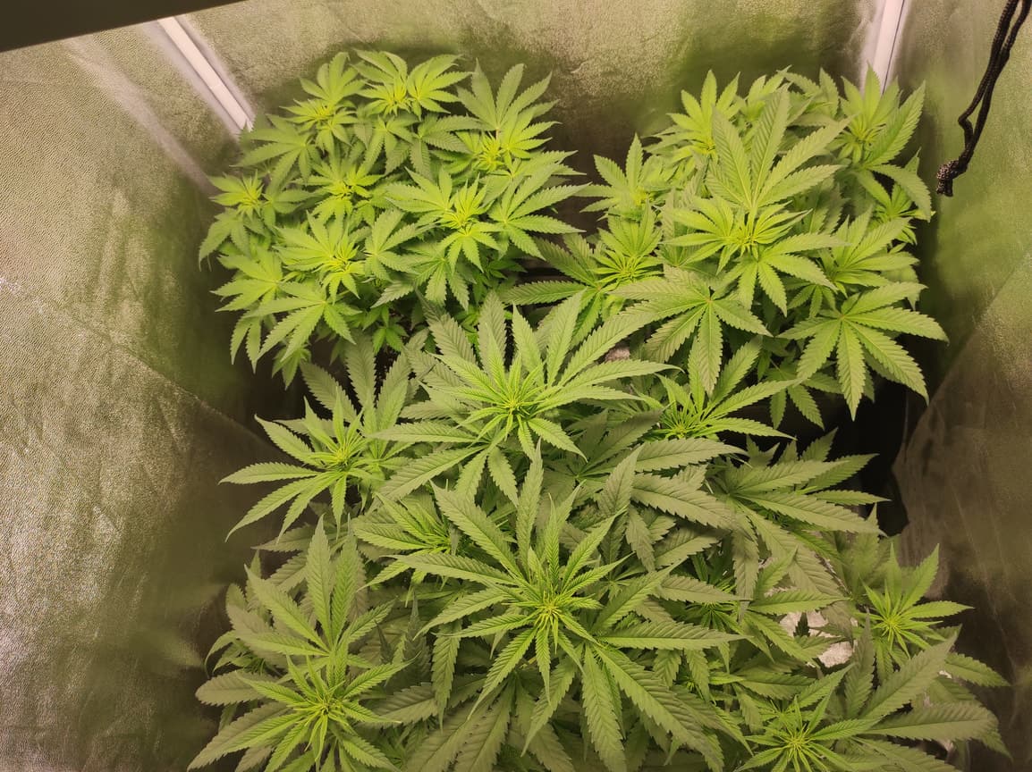 Eine wächst ohne grobes "tie down" weil auch n Knickunfall (die kleinste) und die mittlere ist nicht so ausgeprägt, weil in 20L Coco mit 1*Woche giessen...