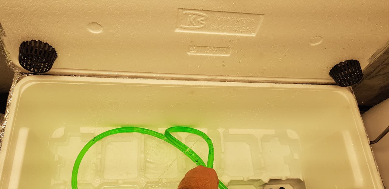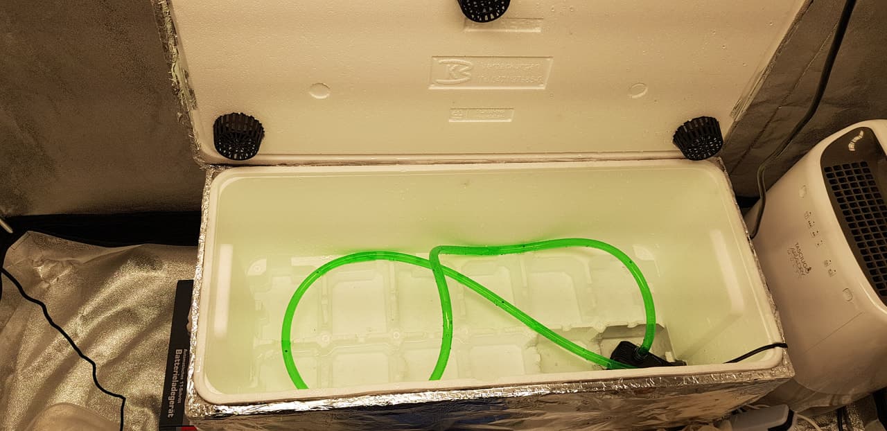 Hier kommt mein 2. Grow. Dieses Mal als selbst gebasteltes LPS. Styroporkiste, Wasserpumpe, Schlauch, Löcher.