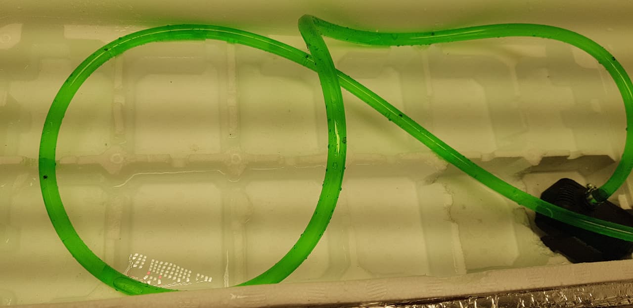 Logisch müsste es funzen aber wir werden sehen. Probleme bis jetzt: Die Löcher im Schlauch gehen selbstädig wieder zu, sodass sie anfangen zu tröpfeln und nicht mehr "strahlen".