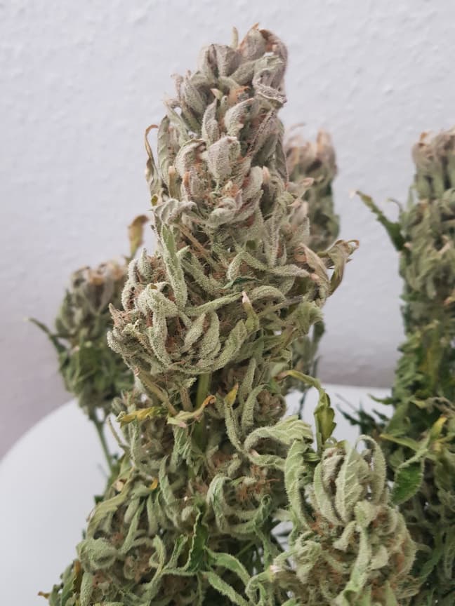 Von 730g Nassgewicht sind nur noch 117g Trockengewicht+50g Stengel übriggeblieben. Leider sehr fluffig die Buds. Geruch gut, Rauchgeschmack eher nicht. Bitter im Hals der Nachgeschmack.