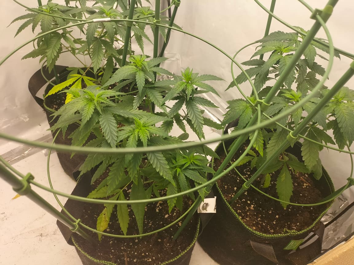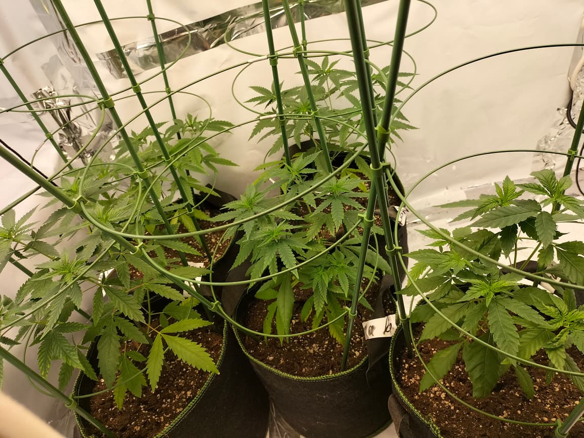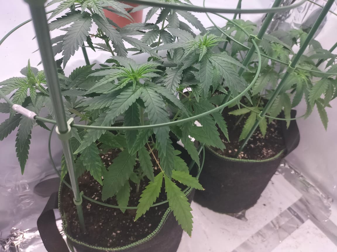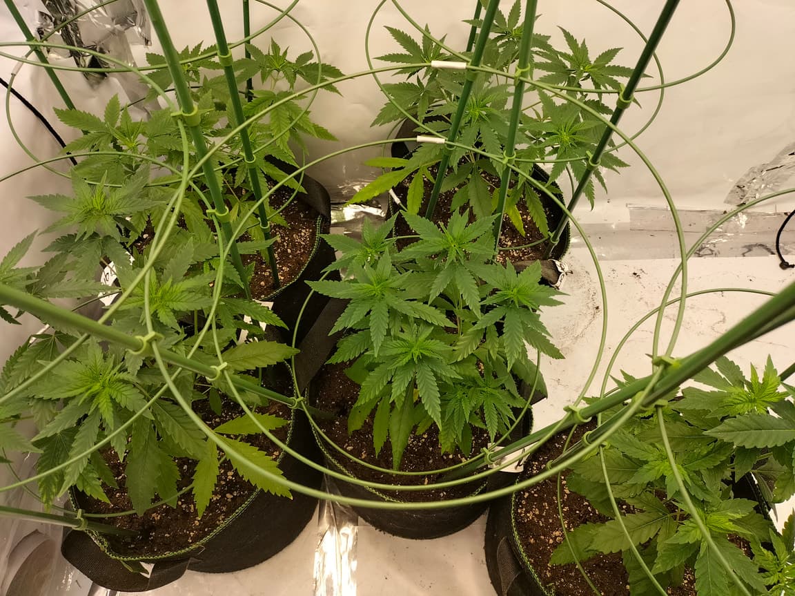 Moin, die Draht Dinger sind normale tomatenrankhilfen. Ich nehme die dafür das Wachstum der Pflanzen Einzuschranken das sie nicht überall hin Wuchern sowie das mit die Mainbuds nicht abknicken