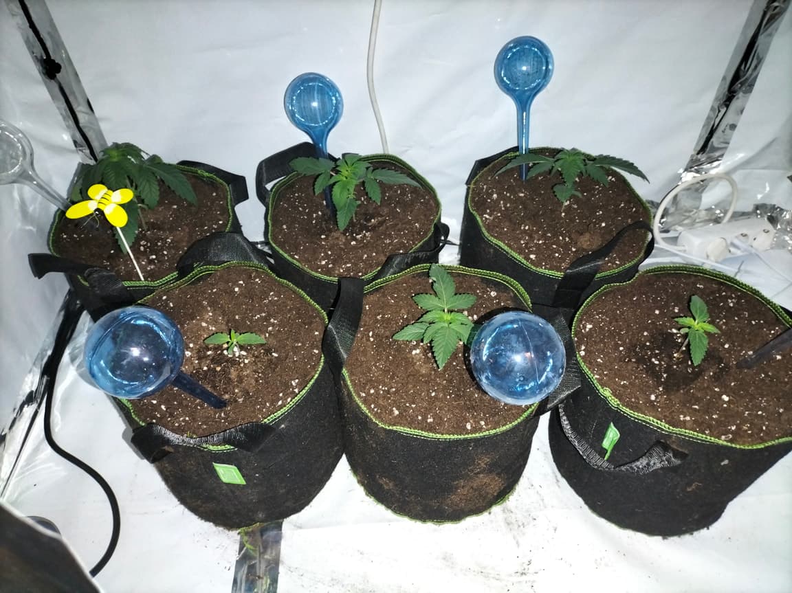 Moin moin, Mal ein kleines Update. Die Damen wurden umgetopft, in ein light/all mix Gemisch. Auf das sie hoffentlich groß und stark werden... Da mir dieses ständige gießen auf die Nerven geht wird Mal was neues aus probiert. Macht das was aus wenn die Wasser Spender leer da drin stecken?