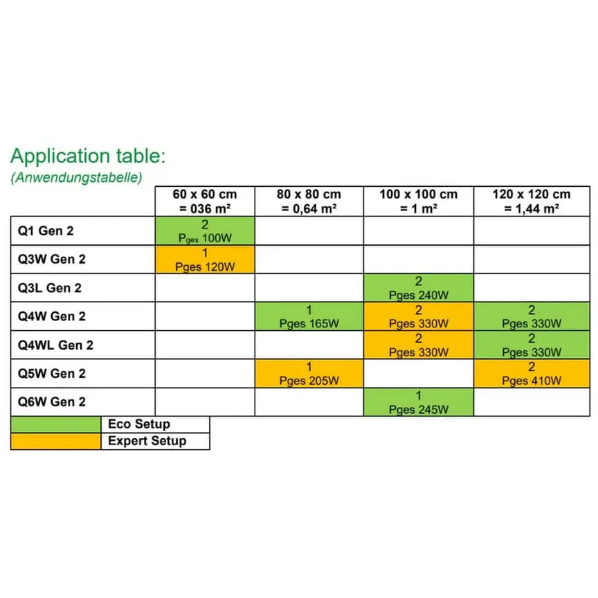Ich hab jetzt Sanlight Q6w für 1x1 Meter...einfach Perfect.