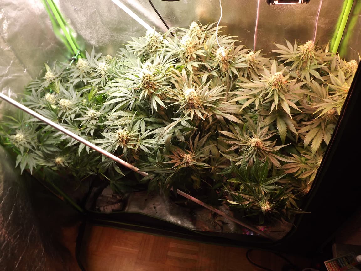 und die buds werden wohl dicke diesmal .... sind alle, ausser dem letzten so in etwa bananengrösse. der letzte budd, der verwachst sich grad mit den kleineren seitentrieben, das wird ein 5 beiniger budd :D