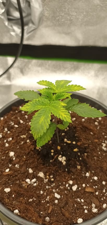 Bei folgendem bild handelt es sich um die Strain Strawberry Lemonade. Sie ist jetzt ca 2-3 Wochen alt, die Blätter sehen komisch aus und ich weiß nicht weiter. Die oberen Paare sind heller und sind innen wie etwa Bleich. Lumatek ATS300W, und Biobizz Allmix erde zur Zeit noch in 3L töpfen. Kommt aber ziemlich bald in 9L!